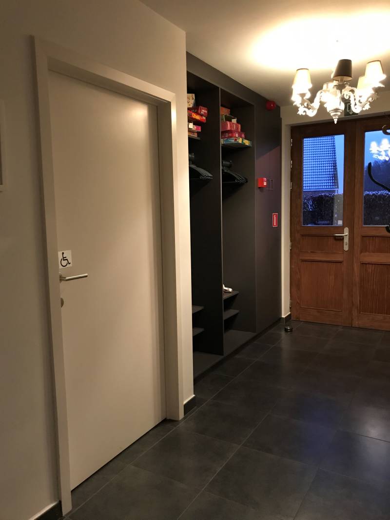 In de inkomhal is er een afzonderlijk toilet voorzien, ook hier bevindt zich de aangepaste kamer voor personen met een beperking
